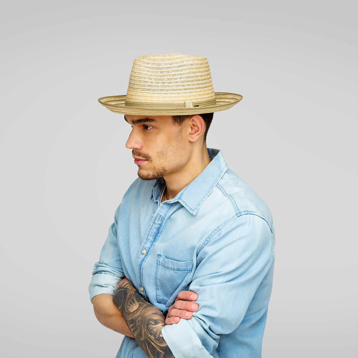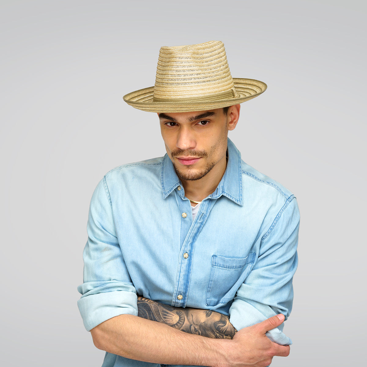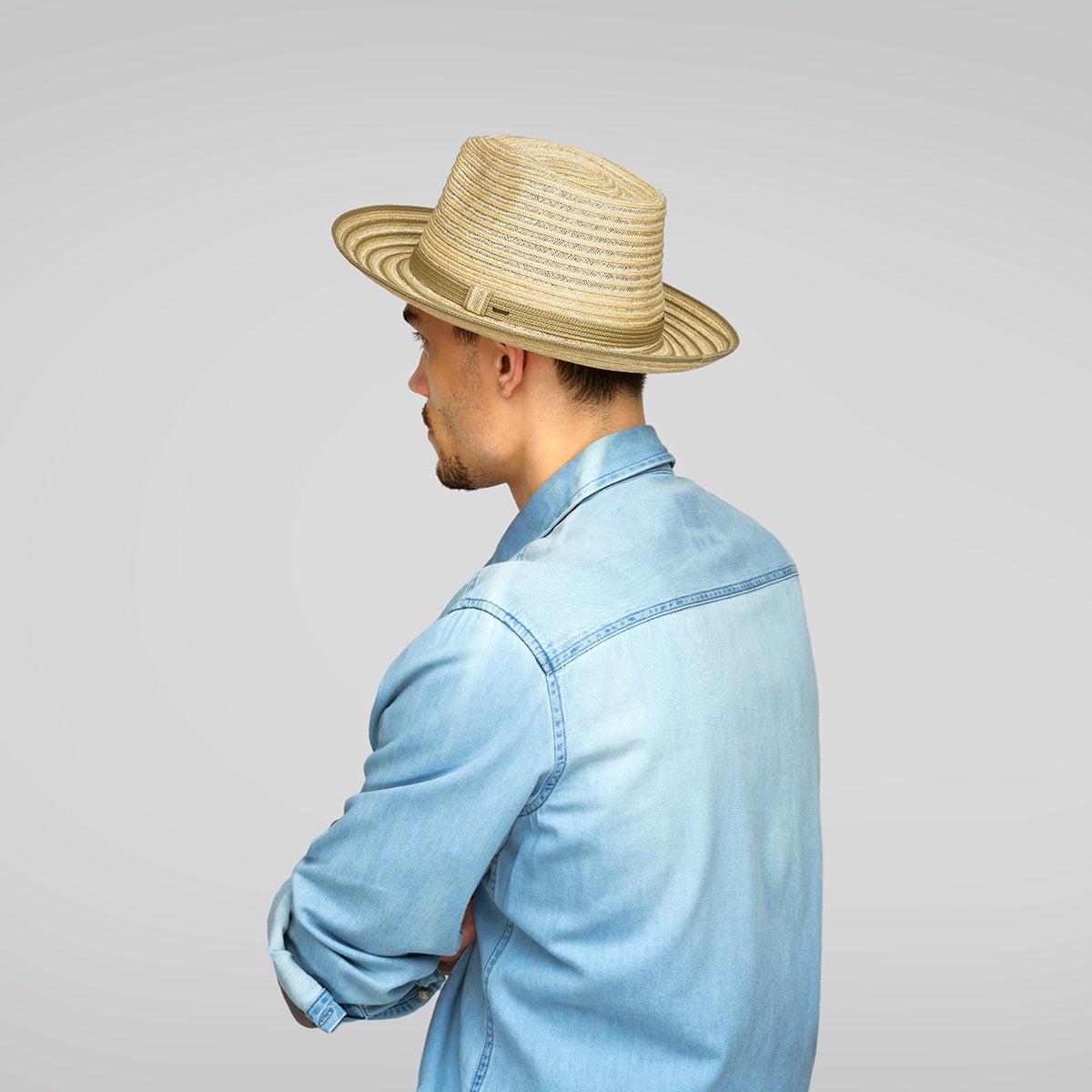 The Kylen is made from a hemp-blend and has a Teardrop crown and a 3" brim with a 2-tone coloring. It is trimmed with a dual toned braid band, and a Comfort sweatband.