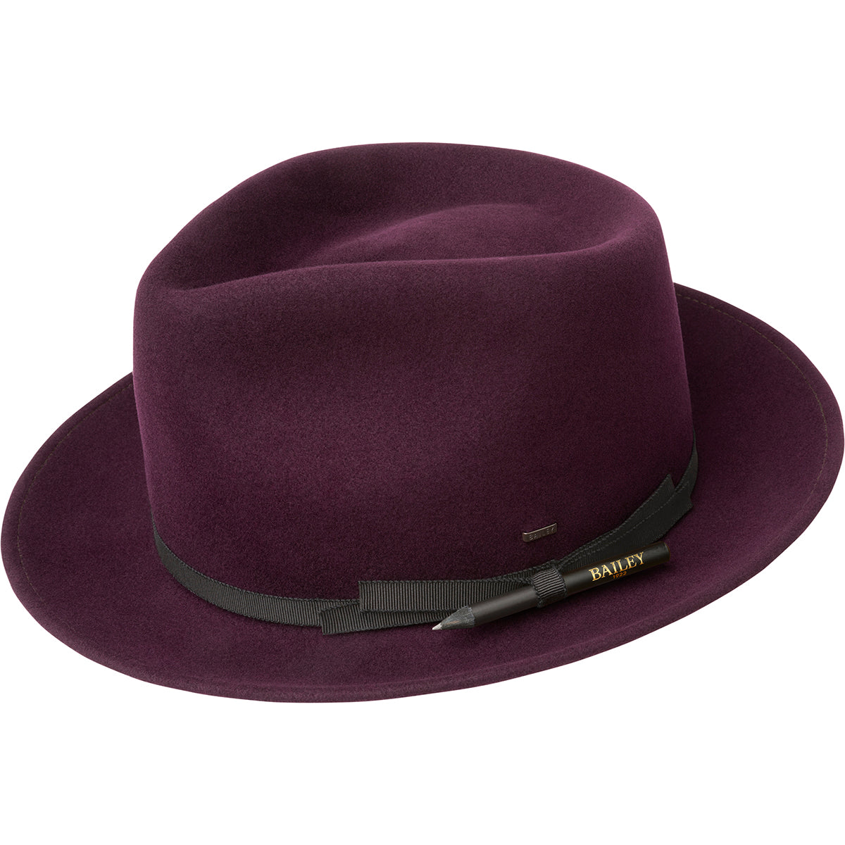 The Wilmore is a 4 1/2" Pinch Front crown with a 2 1/4" Snap brim. Made in Elite Velour, it has a very soft feel and feels great on. Wilmore is trimmed with a narrow tonal Japanese grosgrain band, removable Bailey® pencil, and a fine woven sweatband.