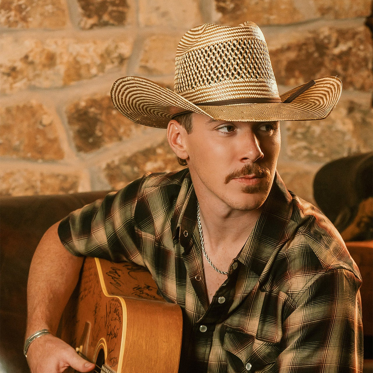 The Breeches 7X is made in a 6" Open crown, has a 4 1/4" brim, and is crafted in a 7X paper straw western body. It is trimmed with a 2-ply grosgrain band, Bailey® Spur pin, and a genuine leather sweatband.